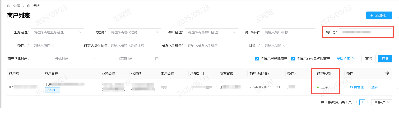 入网申请提交后,可在【商户管理】-【商户列表】,查询商户的审核入网情况。