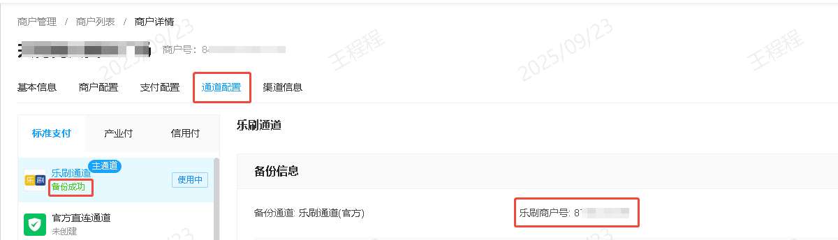 l 乐刷商户号:商户详情页-通道备份处乐刷商户号/渠道查询处乐刷商户号